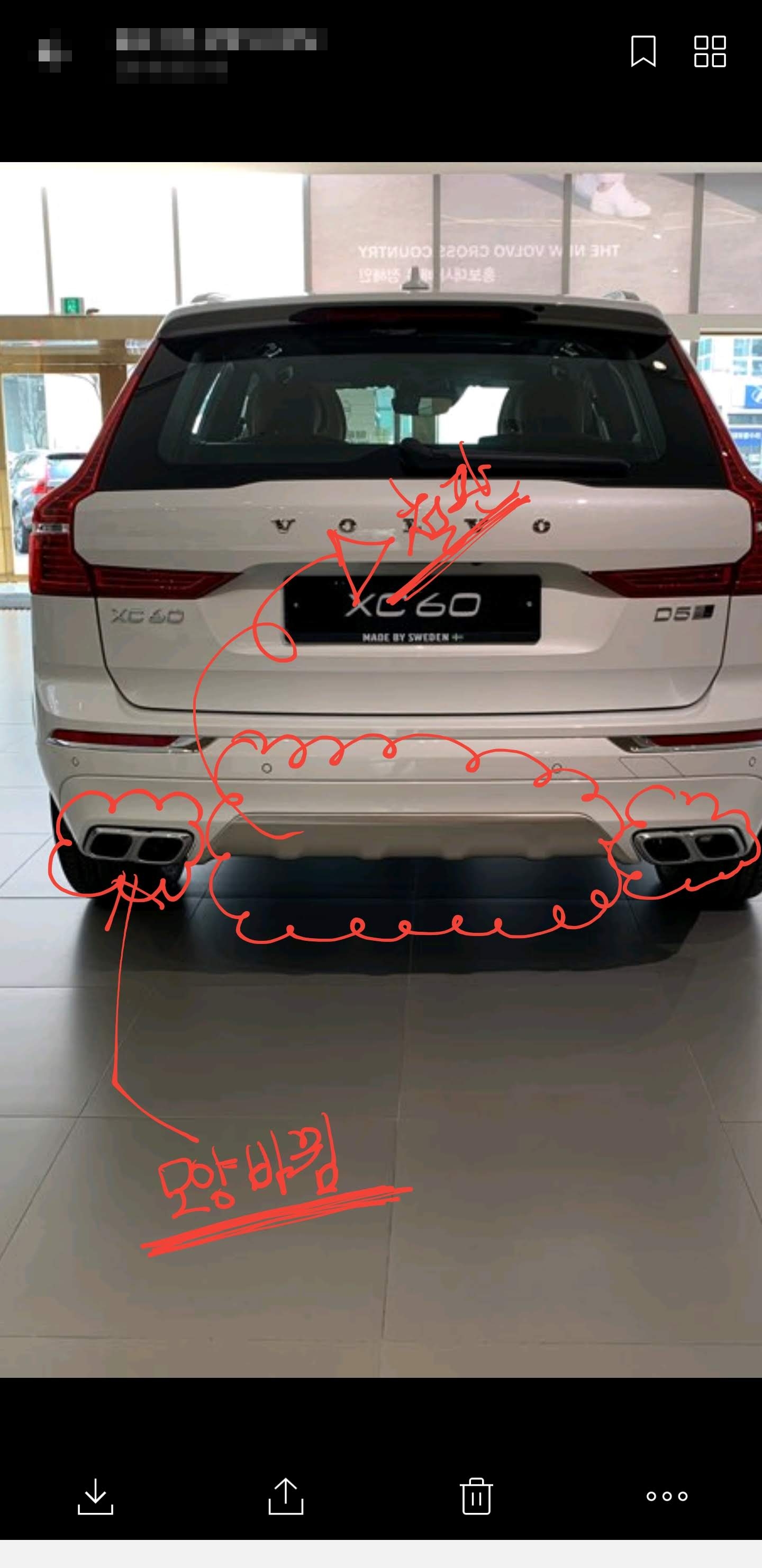 지인이 색상에 대해서 고민중이라면서 보여준 사진입니다. 개인적으로 볼보매장을 들러서 실제로 확인해 본 바로는 흰색이 조금 더 차가 커보이고 깔끔해보이는 맛이 있더군요. 그와 반대로 검정은 무게감이 있고 Fit한 느낌이 있어 세련됨을 느낄 수 있었습니다. 색상 고민은 참 한도 끝도 없는지라, 그나마 차량 관리하기 유리한 흰색으로 선택하라고 조언했습니다.